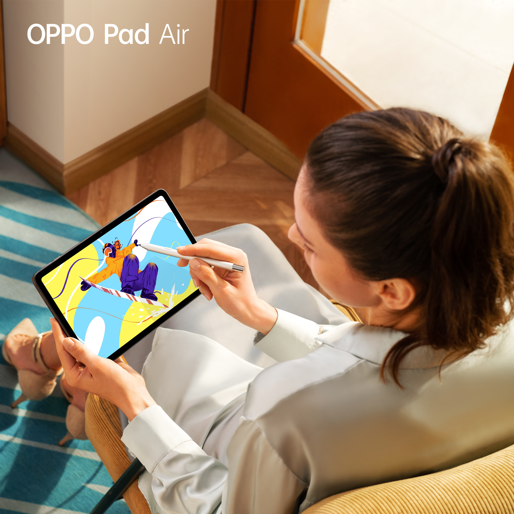 Sở hữu màn hình 10,36 inch độ phân giải 2K QHD đạt chứng nhận của TÜV Rheinland về khả năng bảo vệ mắt dưới ánh sáng xanh, chiếc máy tính bảng nâng tầm trải nghiệm thị giác với hình ảnh rõ nét, mượt mà và giảm mỏi mắt một cách hiệu quả. Máy tính bảng đầu tiên của OPPO cũng được trang bị bốn loa stereo đối xứng có hỗ trợ công nghệ Dolby Atmos, mang đến âm thanh chất lượng cao, rõ ràng và chìm đắm. Để đảm bảo năng lượng suốt ngày dài, OPPO trang bị cho chiếc Pad Air viên pin lớn 7100mAh, cho phép xem video trong 12 giờ, tham gia cuộc họp trực tuyến trong 15 giờ hoặc đọc sách điện tử trong 16 giờ.