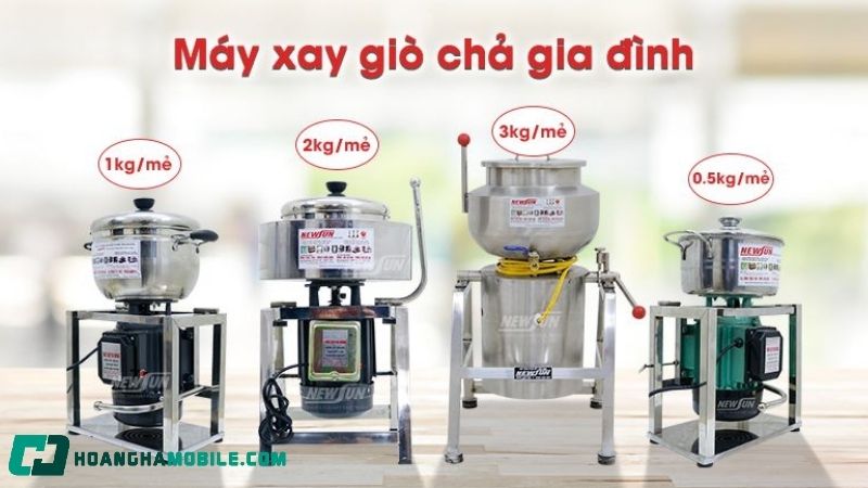- Máy xay giò chả mini 1-3kg: Phù hợp hộ gia đình, quán ăn nhỏ, thử nghiệm sản phẩm mới.