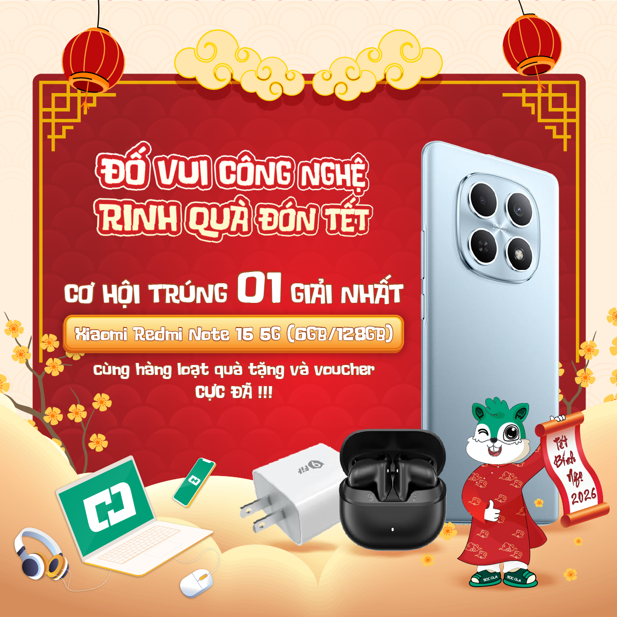 Tết đến xuân về không chỉ là thời điểm sum vầy, mà còn là lúc Hoàng Hà Mobile mang đến những trải nghiệm mới mẻ dành riêng cho khách hàng thân thiết. Nhân dịp đầu năm 2026, tham gia ngay minigame “Đố vui công nghệ – Rinh quà đón Tết” với hàng loạt phần quà hấp dẫn, voucher giá trị và cơ hội trúng quà công nghệ cực xịn.