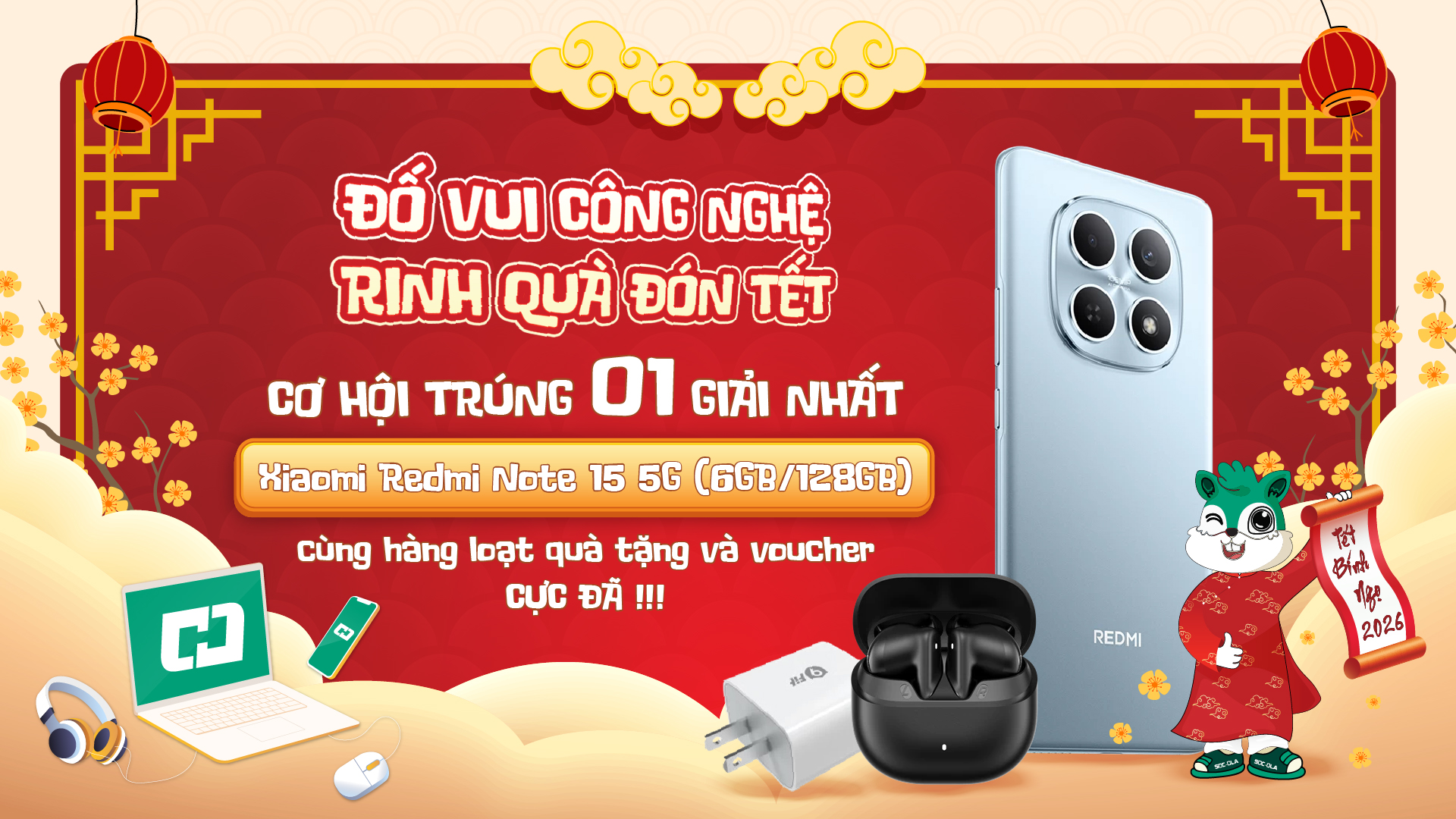 | 🥇 01 Giải Nhất | Điện thoại Xiaomi REDMI Note 15 5G (6GB/128GB) |
