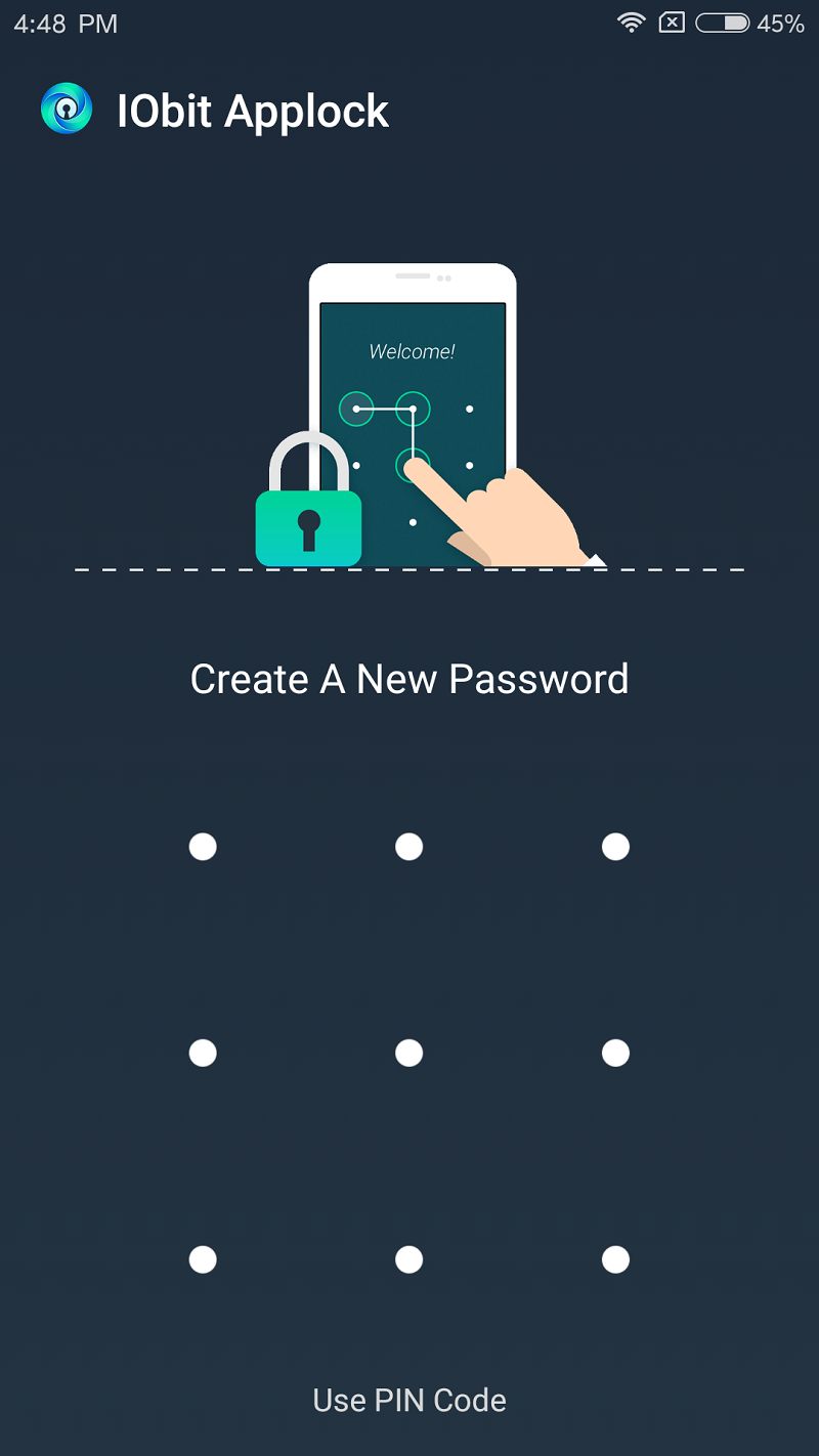 Khi mở ứng dụng lên bạn cần tạo mật khẩu để có thể truy cập vào ứng dụng lần sau. Nếu không muốn sử dụng mật khẩu bằng cách vẽ hình thì bạn có thể nhấn vào mục Use PIN Code để dùng mật khẩu bình thường.