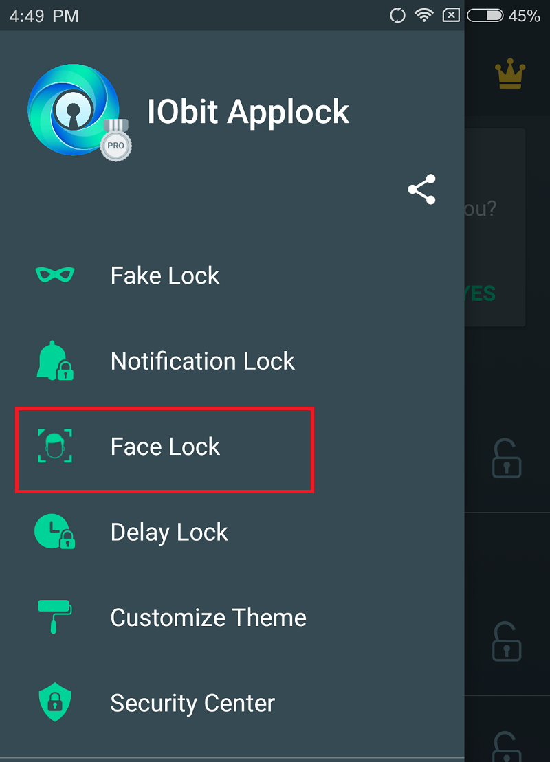 Tiếp theo, bạn nhấn vào 3 gạch phía bên trái rồi chọn mục Face Lock: