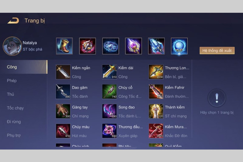 Bạn có thể lên trang bị cho Natalya Liên Quân như sau: