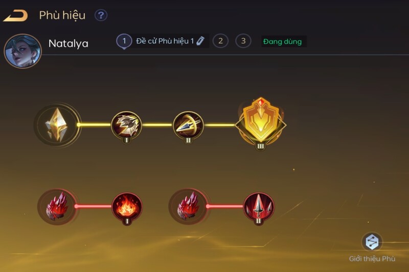 Natalya nên chọn phù hiệu phù hợp để tăng công phép, xuyên kháng phép và hồi chiêu. Bạn có thể lên phù hiệu cho cô nàng này như sau: