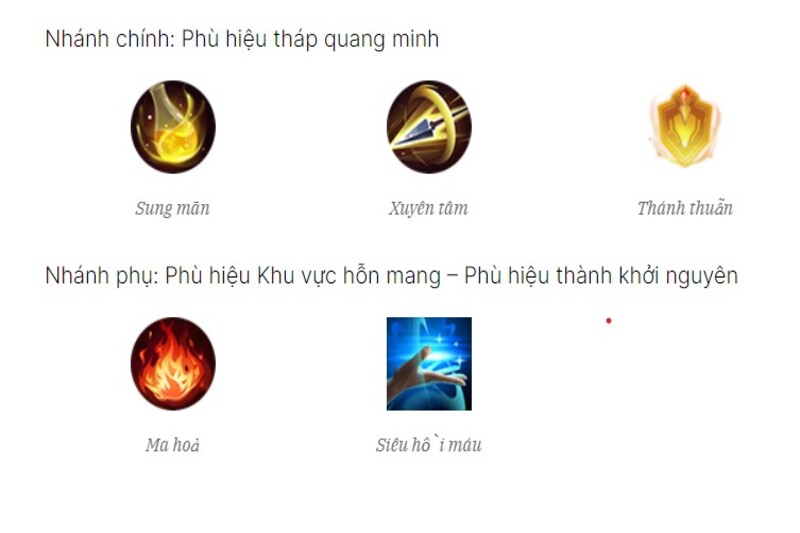 Nhánh chính: Lựa chọn Sung mãn (+1.6% công phép), Xuyên tâm (+6.4% xuyên giáp phép) và Thánh thuẫn (+10% xuyên giáp phép).