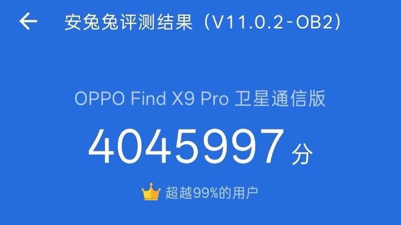 Mới đây, Zhou Yibao, người đứng đầu dòng sản phẩm OPPO Find, đã đăng tải một thông tin gây chấn động trên mạng xã hội. Theo đó, phiên bản Find X9 Pro Satellite Communication Edition sắp ra mắt đã đạt được một cột mốc chưa từng có trên bảng xếp hạng hiệu năng AnTuTu, với con số chính xác lên đến 4.045.997 điểm, vượt qua ngưỡng 4 triệu điểm một cách ngoạn mục.