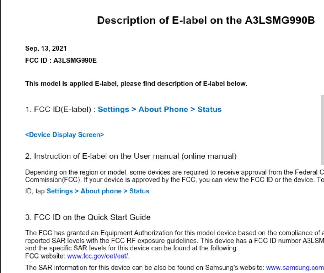 Bỏ qua những tin đồn trên, rò rỉ mới nhất lại cho thấy tình hình sẽ diễn biến theo chiều hướng ngược lại. Bởi vì một người dùng đã bất ngờ phát hiện Galaxy S21 FE trên trang web của FCC (Ủy ban Truyền thông Liên bang Mỹ). Danh sách FCC quả thật có ghi nhận thiết bị SM-G990E được cho là phiên bản dùng chip Exynos của Galaxy S21 FE. Trước đó vào tháng 6, phiên bản Galaxy S21 FE dùng chip Snapdragon cũng đã đạt chứng nhận FCC với mã SM-G990U và SM-G990U1.