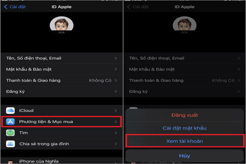 Bước 1: Vào Cài đặt và chọn vào biểu tượng hình Avatar trên cùng của màn hình. Sau đó nhấp vào Phương tiện & Mục mua trên giao diện, tiếp đến chọn Xem tài khoản.