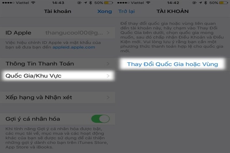 Để thực hiện điều này, hãy vào mục cài đặt của thiết bị và chọn quốc gia/vùng mong muốn chuyển đổi. Bạn cũng cần có một tài khoản Google hoặc Apple mới để sử dụng cho quốc gia/vùng mới này.
