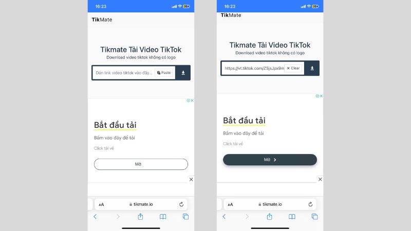 Bước 2: Truy cập website https://tikmate.io//. Tiếp đến, dán liên kết đã sao chép ở bước trên vào ô và nhấn chọn nút Download.
