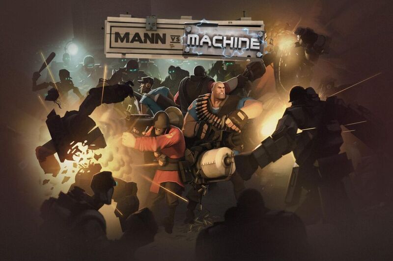 Mann vs. Machine (MvM): Đây là chế độ chơi hợp tác, nơi sáu người chơi cùng nhau chống lại những đợt tấn công của các robot do Gray Mann tạo ra. Người chơi phải bảo vệ một máy phát điện khỏi bị phá hủy bởi các robot.
