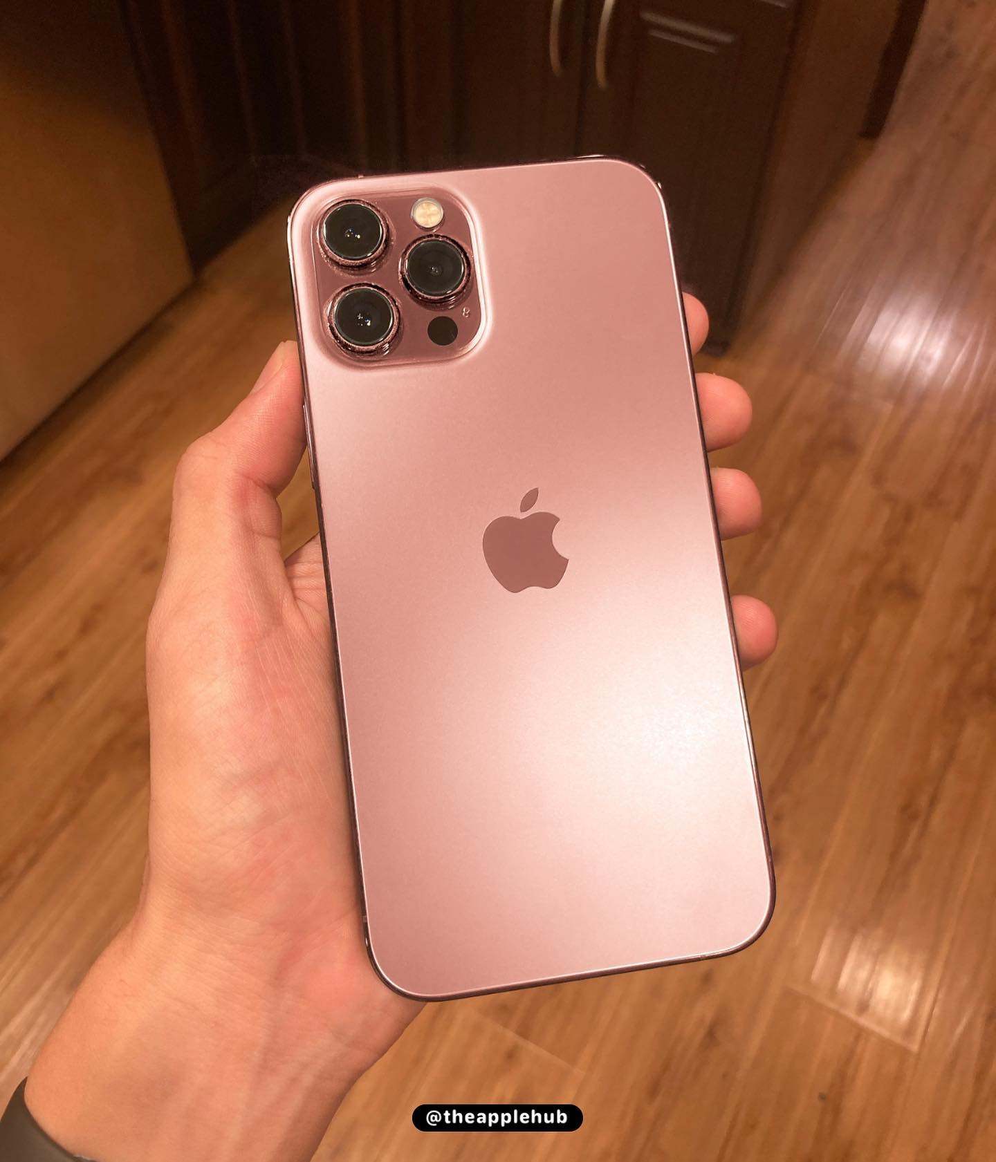 Chiếc iPhone 13 Pro thực tế đã xuất hiện. Nhìn thoáng qua có vẻ rất giống iPhone 12 Pro nhưng màu Rose Gold nổi tiếng chính là điểm khác biệt rõ ràng nhất.