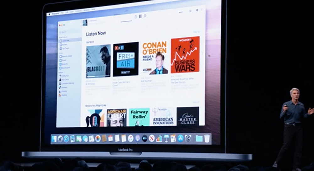 - macOS 10.15 Catalina đã khai tử iTunes và khai sinh ra các ứng dụng Music, Podcasts và TV hoàn toàn mới. Đồng bộ hóa thiết bị iOS nay đã chuyển sang Finder.