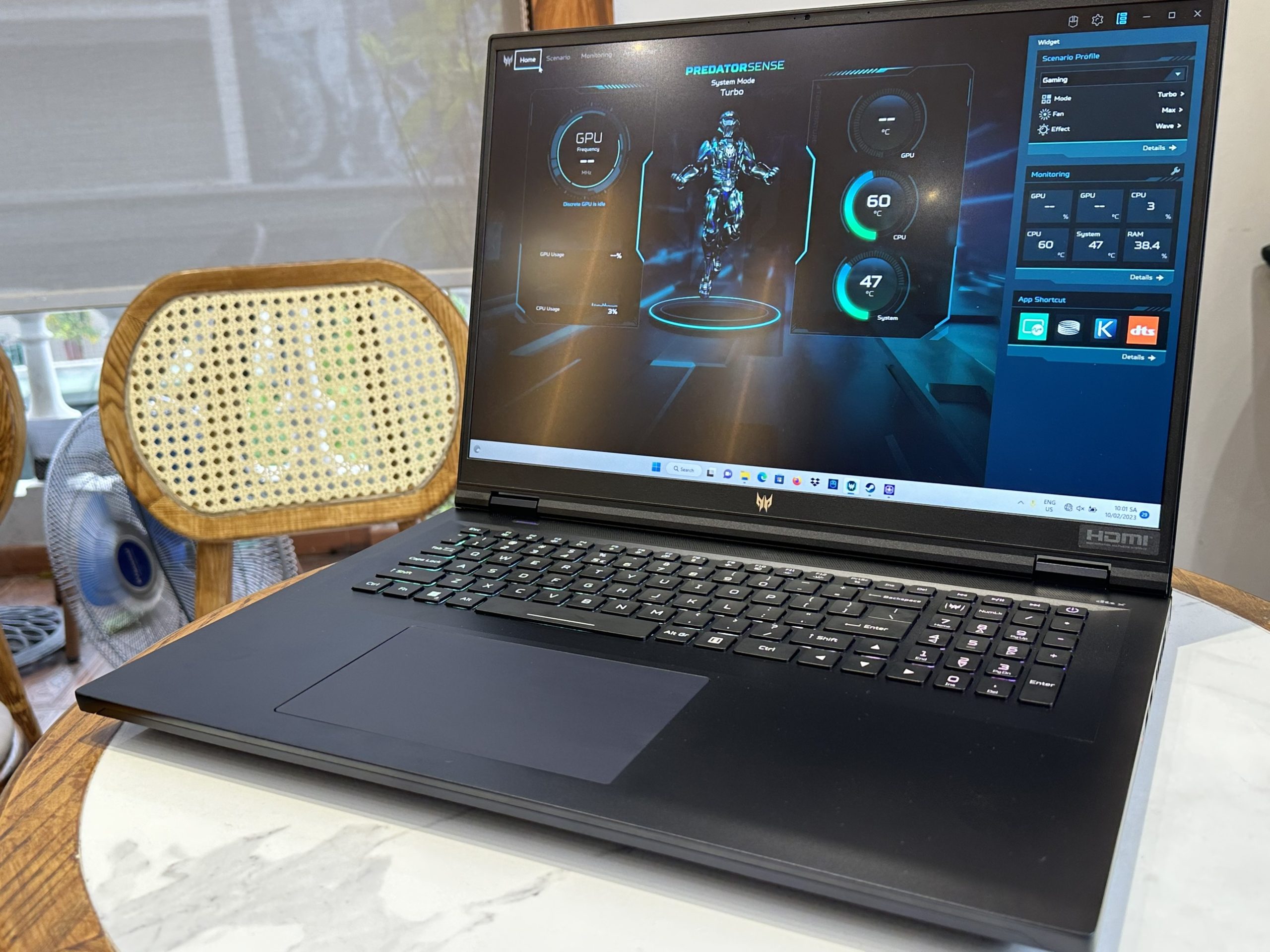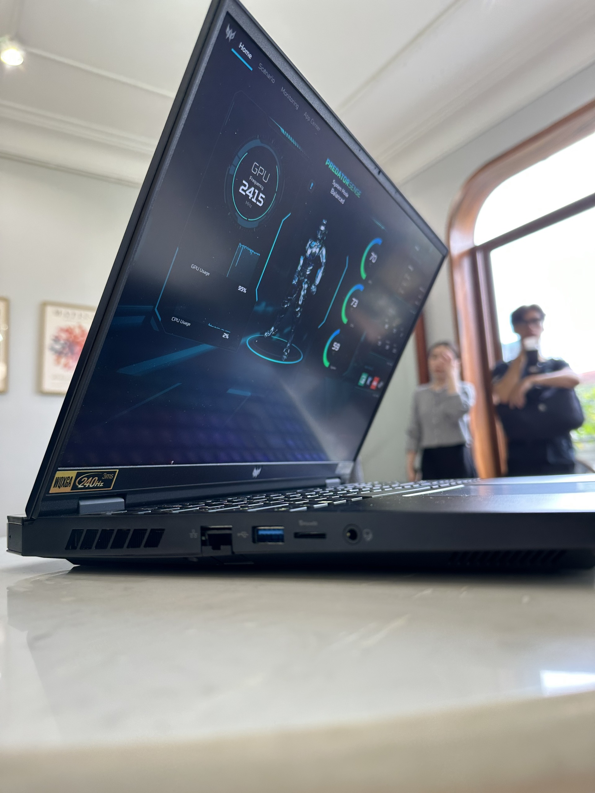 Khi kiểm tra qua phần mềm Predator Sense, chiếc máy đạt đến tốc độ 6100 vòng/phút. Với tốc độ như vậy, nhiệt độ của máy luôn rất mát, nhưng bù lại thì âm quạt quay sẽ khá to.