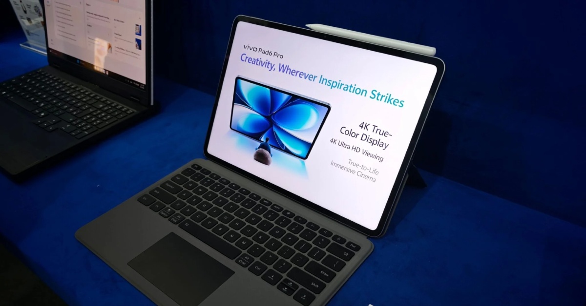 Không chỉ dừng lại ở một thiết bị giải trí đơn thuần, Vivo Pad 6 Pro xuất hiện tại sự kiện với diện mạo của một cỗ máy làm việc thực thụ khi được trưng bày kèm bộ phụ kiện bàn phím rời và bút cảm ứng chuyên dụng.