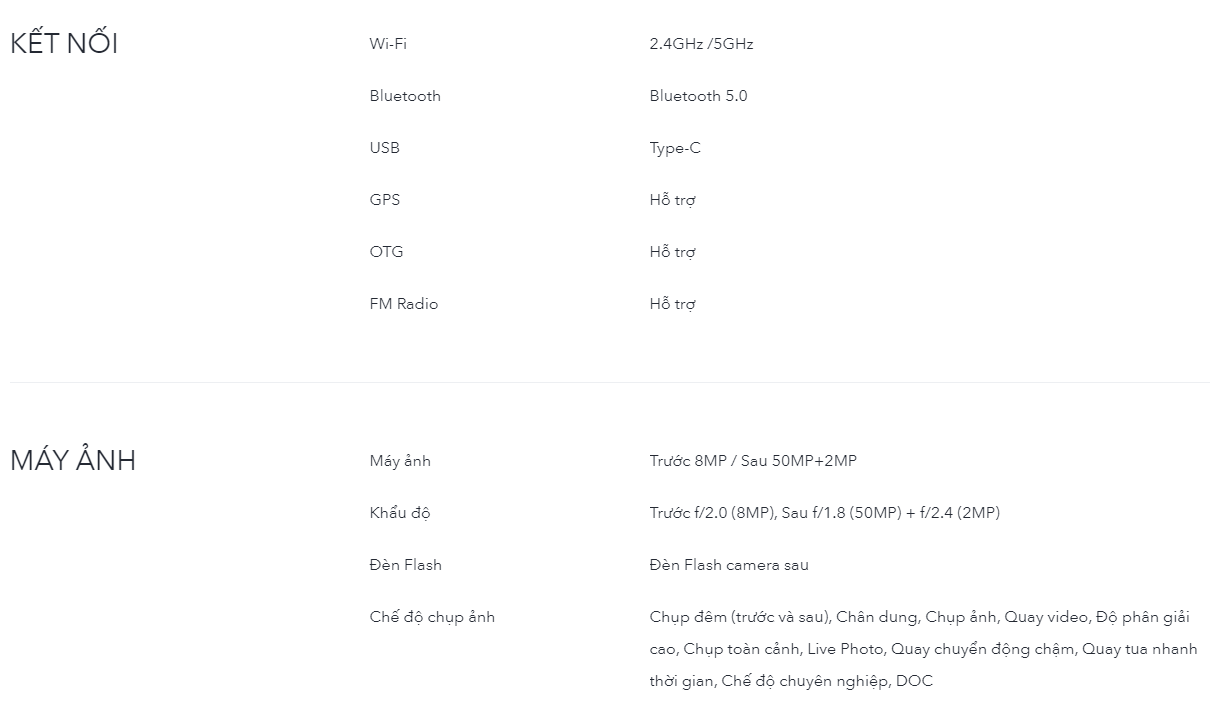 Máy sẽ có màn hình IPS LCD 6,55 inch phía trước với độ phân giải HD + và camera selfie 8MP được đặt trong notch hình giọt nước. Mặt sau là camera chính 50MP với khẩu độ f / 1.8 cùng với mô-đun phụ 2MP.