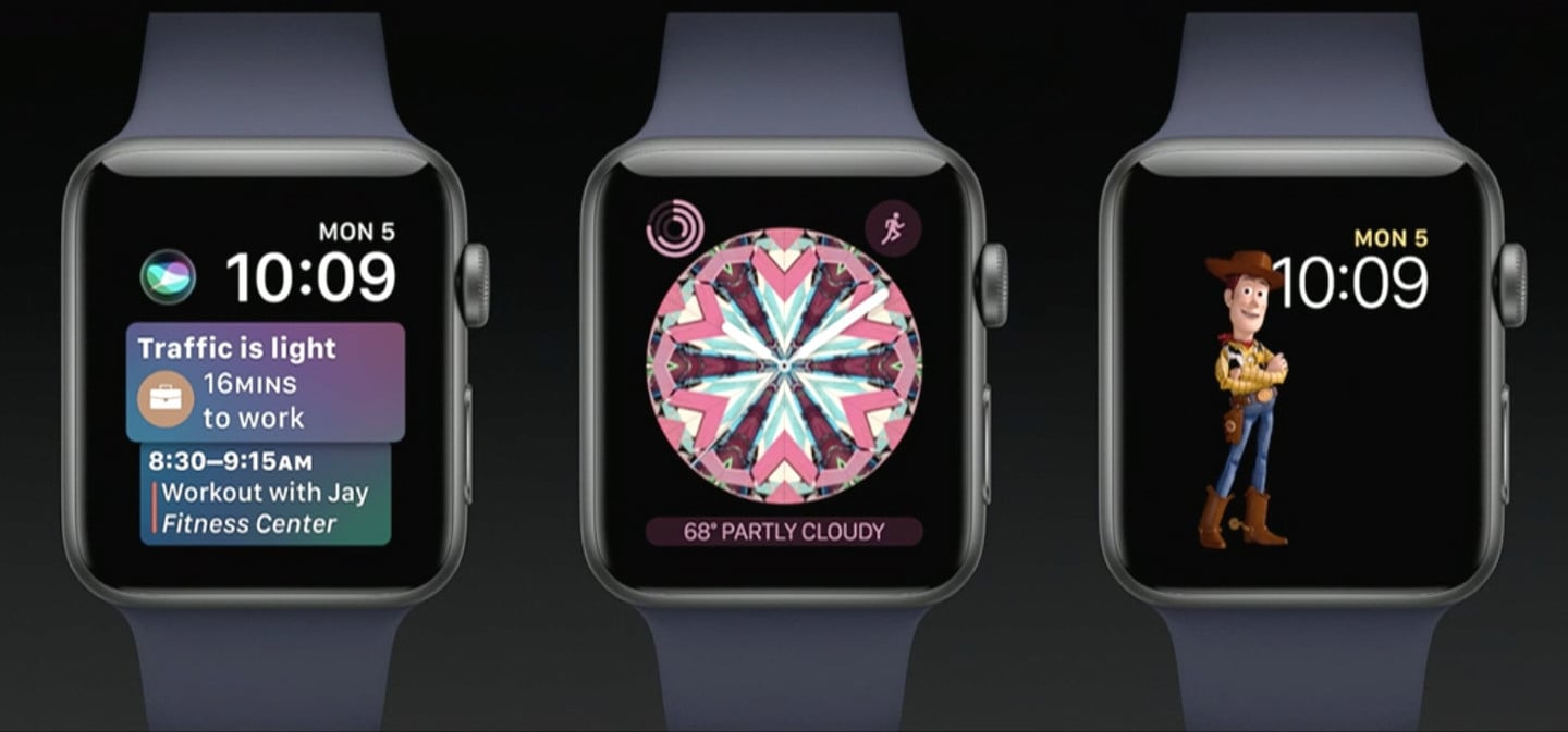 Những đổi mới thấy rõ bao gồm các mặt đồng hồ mới với hoạt họa độc đáo, thú vị. Điển hình trong số này là bộ ba nhân vật từ series Toy Story vốn rất được lòng khán giả. Mặt đồng hồ kính vạn hoa mới trên WatchOS 4 có thể thay đổi theo thời gian. Các thông tin được hiển thị một cách trực quan, dễ thao tác hơn.