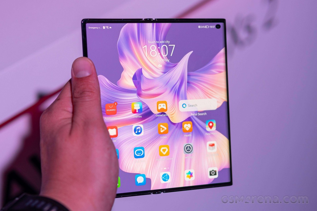 Màn hình của máy rất tươi sáng và có màu sắc dễ chịu. Huawei gọi nó là màn hình True-Chrome. Màn hình có tỷ lệ 8:7.1 khi mở rộng hoàn toàn, và 19:9 khi gập lại, mang lại trải nghiệm sử dụng một tay rất truyền thống. Khả năng gập ra ngoài đạt được là nhờ Bản lề cánh Falcon xoay đôi của Huawei. Nó mạnh hơn nhiều so với thế hệ trước và cho phép bạn nâng Mate Xs 2 lên thực tế ở bất kỳ vị trí nào bạn muốn.