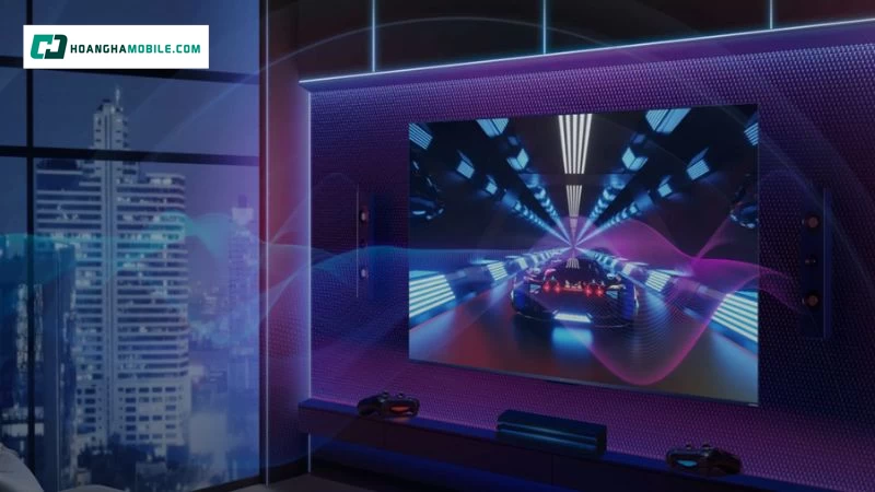 Điểm nổi bật nhất là sự kết hợp giữa hệ thống loa cao cấp Onkyo và công nghệ âm thanh vòm Dolby Atmos, giúp tạo ra không gian âm thanh ba chiều chân thực và sống động. Nhờ đó, người xem có cảm giác như đang đắm chìm trong khung cảnh của từng bộ phim, từng trận đấu thể thao hay buổi hòa nhạc trực tiếp.