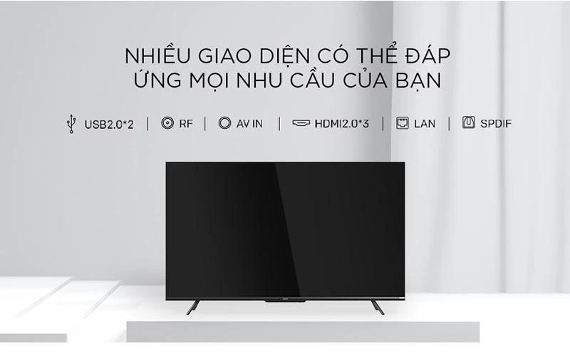 Sở hữu tivi CooCaa 65 inch 65Y72 giúp bạn hoàn toàn có thể kết nối với các thiết bị ngoại vi vô cùng tiện lợi qua các cổng USB 2.0, HDMI 2.0, AV IN, RF.