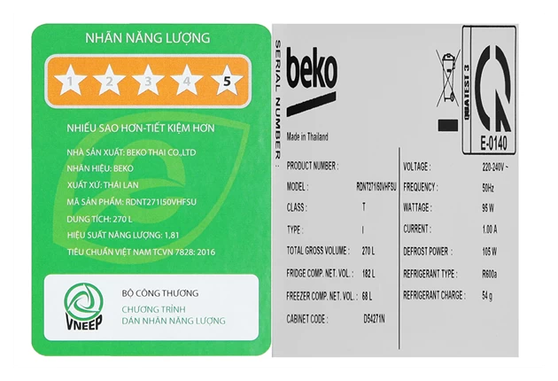 Bình luận về Beko Inverter 250 lít RDNT271I50VHFSU