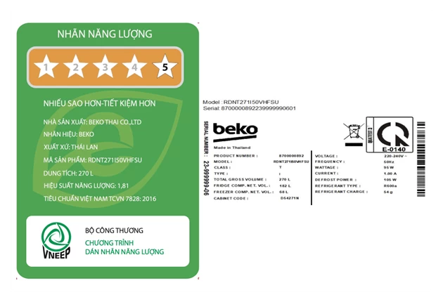 • Công suất tiêu thụ công bố theo TCVN Đang cập nhật