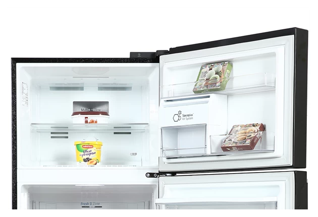 Tủ lạnh LG IGN-D372BLA được thiết kế theo kiểu ngăn đá trên là một kiểu dáng truyền thống nhưng vẫn rất được ưa chuộng nhờ tính tiện lợi và dễ sử dụng. Dung tích tổng của tủ đạt 410 lít, trong đó dung tích sử dụng thực tế là 374 lít, được phân bổ hợp lý với ngăn đá 88 lít và ngăn lạnh 286 lít. Với sức chứa rộng rãi, tủ đáp ứng tốt nhu cầu lưu trữ thực phẩm cho gia đình có từ 3 đến 5 thành viên mà vẫn đảm bảo sự ngăn nắp, khoa học.