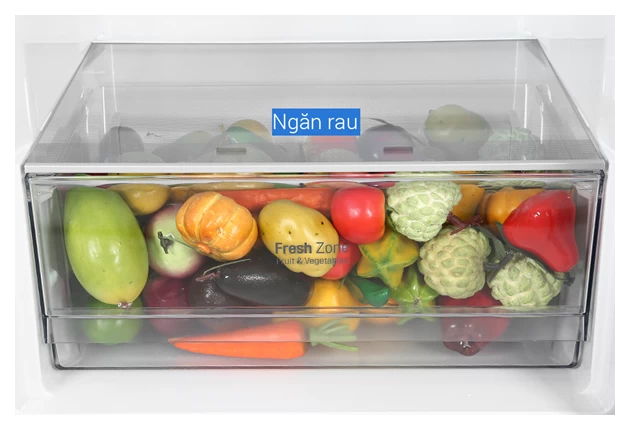 Ngăn rau củ lớn với lưới cân bằng ẩm giúp duy trì độ ẩm lý tưởng, bảo quản rau củ quả tươi lâu hơn gấp nhiều lần so với ngăn thông thường.